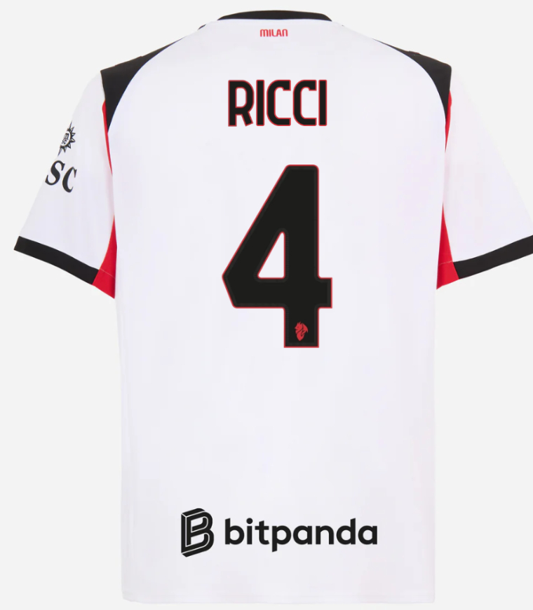 We provide AC Milan Away RICCI 4 Jersey 25-26. Buy AC Milan Away RICCI 4 Jersey 25-26. Show your support for AC Milan with the latest AC Milan Soccer Kits.