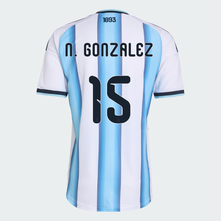 We provide Argentina Home N. GONZALEZ 15 World Cup Jersey 2026 (Player Version). Show your support for Argentina with the latest Argentina Soccer Kits. Player version shirts, being slim fit. It is generally recommended to order at least one size larger than your usual size.
