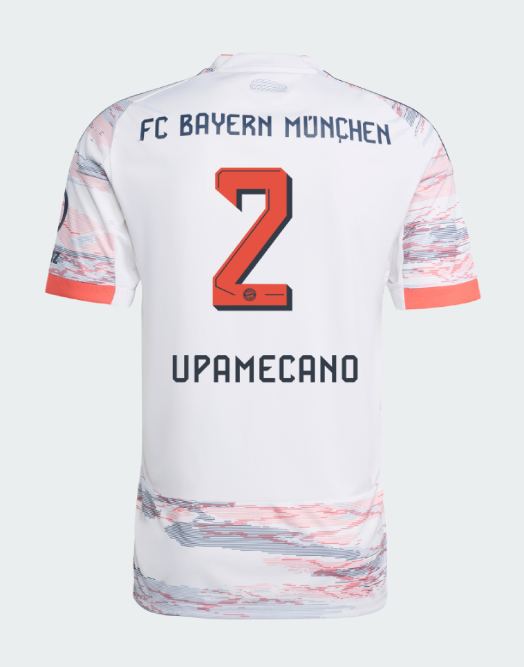 We provide Bayern Munich Away Upamecano 2 Jersey 25-26. Buy Bayern Munich Away Upamecano 2 Jersey 25-26. Show your support for Bayern Munich with the latest Bayern Munich Soccer Kits.
