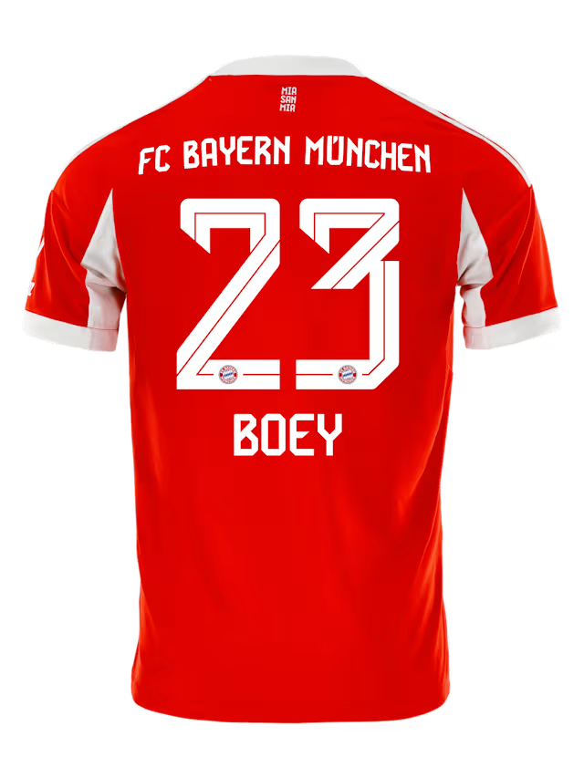 We provide Bayern Munich Home Boey 23 Jersey 25-26. Buy Bayern Munich Home Boey 23 Jersey 25-26. Show your support for Bayern Munich with the latest Bayern Munich Soccer Kits.