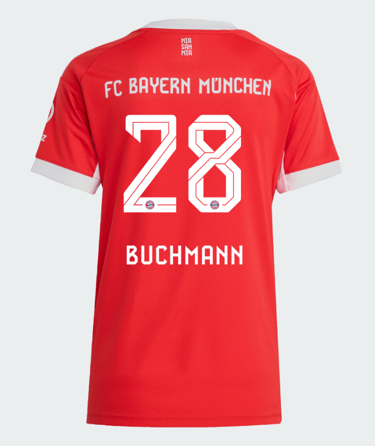 We provide Bayern Munich Home Buchmann 28 Women Jersey 25-26. Buy Bayern Munich Home Buchmann 28 Women Jersey 25-26. Show your support for Bayern Munich with the latest Bayern Munich Soccer Kits.