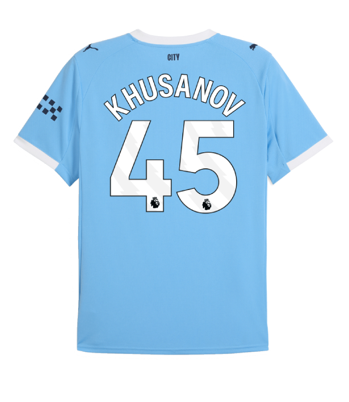 We provide Manchester City Home Khusanov 45 Jersey 25-26. Buy Manchester City Home Khusanov 45 Jersey 25-26. Show your support for Manchester City with the latest Manchester City Soccer Kits.