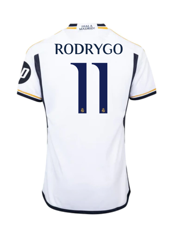 We provide 23-24 Real Madrid Rodrygo 11 Home Jersey. Buy 23-24 Real Madrid Rodrygo 11 Home Jersey. Show your support for Real Madrid with the latest Real Madrid Soccer Kits. Patches are not included.