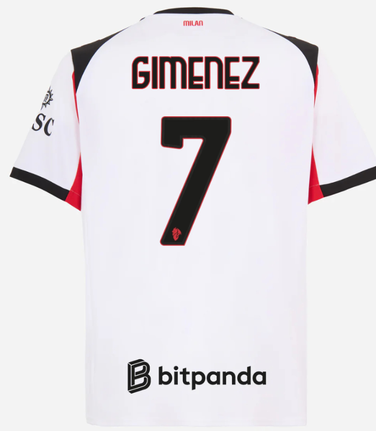 We provide AC Milan Away GIMENEZ 7 Jersey 25-26. Buy AC Milan Away GIMENEZ 7 Jersey 25-26. Show your support for AC Milan with the latest AC Milan Soccer Kits.