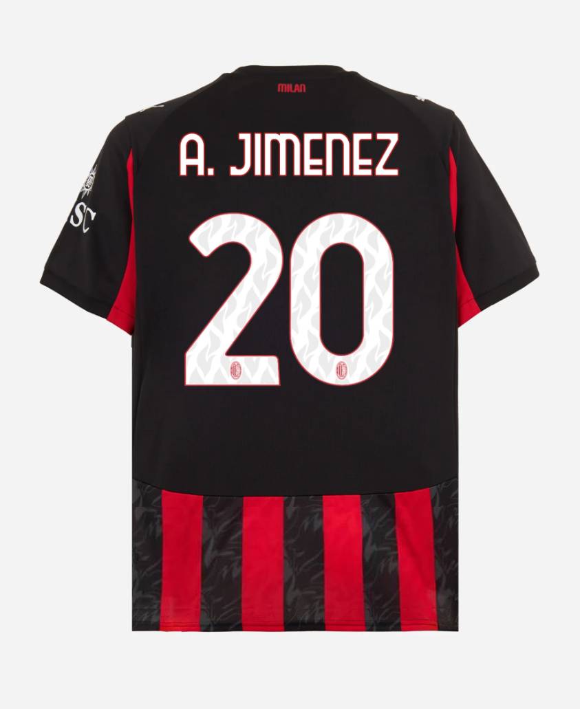 We provide AC Milan Home A. JIMENEZ 20 Jersey 25-26. AC Milan Home Jersey 25-26. Show your support for AC Milan with the latest AC Milan Soccer Kits.