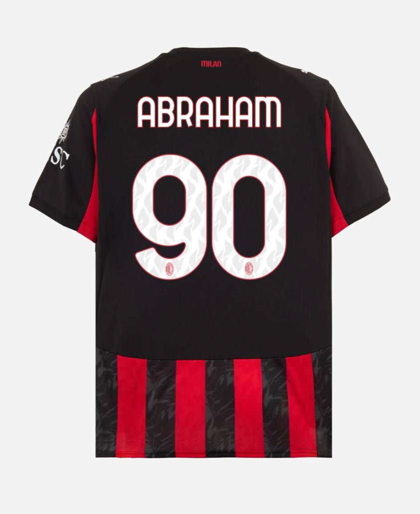 We provide AC Milan Home ABRAHAM 90 Jersey 25-26. Buy AC Milan Home ABRAHAM 90 Jersey 25-26. Show your support for AC Milan with the latest AC Milan Soccer Kits.