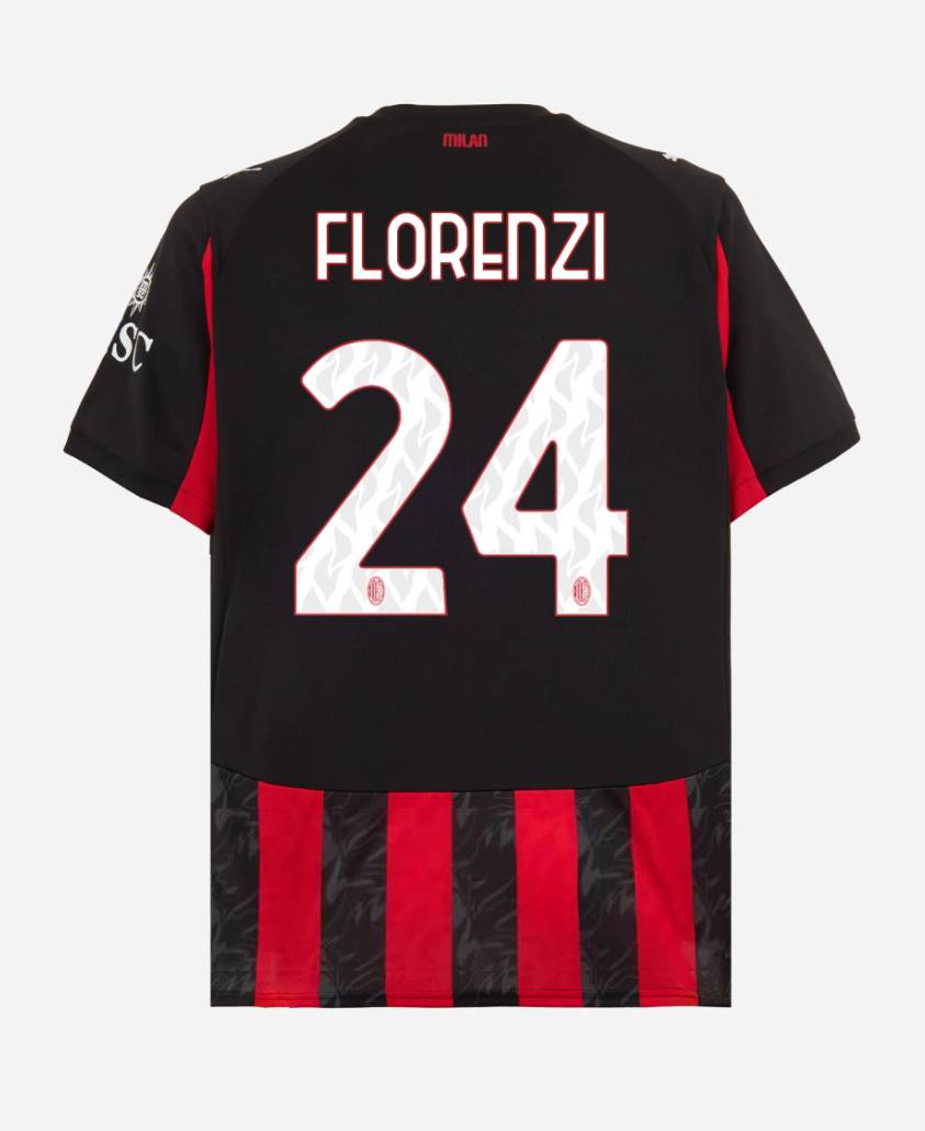 We provide AC Milan Home FLORENZI 24 Jersey 25-26. Buy AC Milan Home FLORENZI 24 Jersey 25-26. Show your support for AC Milan with the latest AC Milan Soccer Kits.