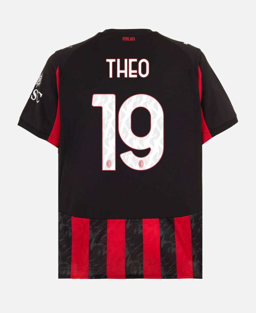 We provide AC Milan Home THEO 19 Jersey 25-26. Buy AC Milan Home THEO 19 Jersey 25-26. Show your support for AC Milan with the latest AC Milan Soccer Kits.