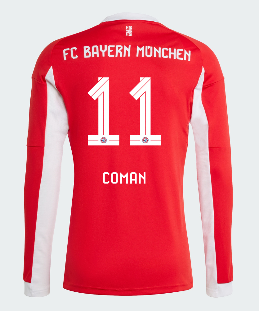 We provide Bayern Munich Home Coman 11 Long Sleeve Jersey 25-26. Buy Bayern Munich Home Coman 11 Long Sleeve Jersey 25-26. Show your support for Bayern Munich with the latest Bayern Munich Soccer Kits.