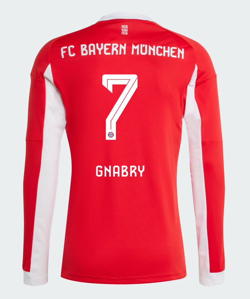 We provide Bayern Munich Home Gnabry 7 Long Sleeve Jersey 25-26. Buy Bayern Munich Home Gnabry 7 Long Sleeve Jersey 25-26. Show your support for Bayern Munich with the latest Bayern Munich Soccer Kits.