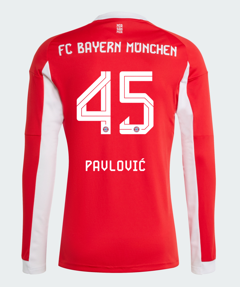 We provide Bayern Munich Home Pavlović 45 Long Sleeve Jersey 25-26. Buy Bayern Munich Home Pavlović 45 Long Sleeve Jersey 25-26. Show your support for Bayern Munich with the latest Bayern Munich Soccer Kits.