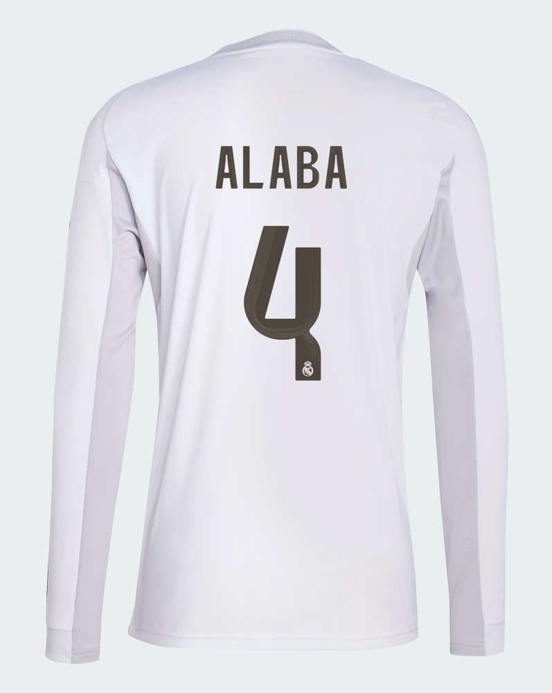 We provide Real Madrid Home Alaba 4 Long Sleeve Jersey 25-26. Buy Real Madrid Home Alaba 4 Long Sleeve Jersey 25-26. Show your support for Real Madrid with the latest Real Madrid Soccer Kits.
