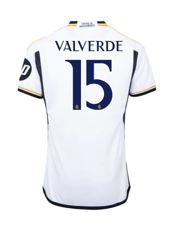 We provide 23-24 Real Madrid Valverde 15 Home Jersey. Buy 23-24 Real Madrid Valverde 15 Home Jersey. Show your support for Real Madrid with the latest Real Madrid Soccer Kits. Patches are not included.